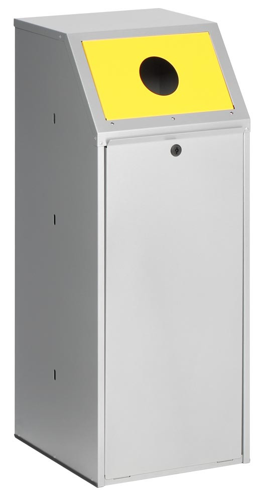Wertstoffsammler Vol. 69 l, BxTxH 400x400x1000 mm, Einwurf rund (für Flaschen, Dosen, etc.) RAL 1023 verkehrsgelb, Korpus silber, inkl. Inneneinsatz EP530652