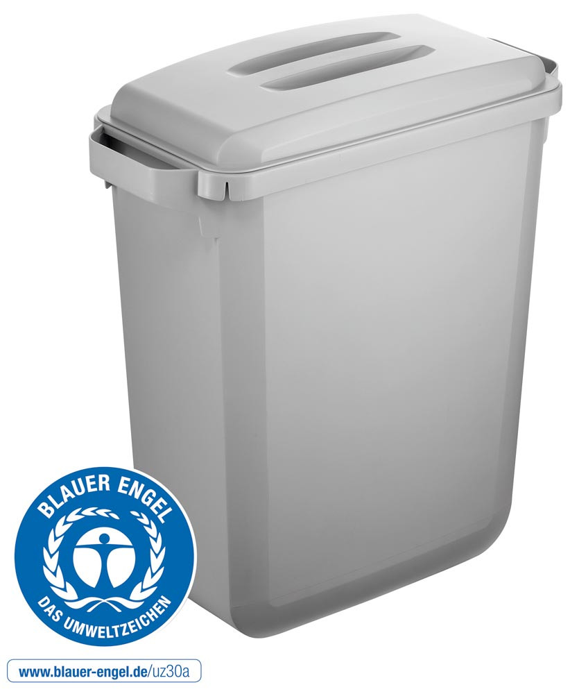 Wertstoffsammler inkl. grauem Deckel, Recycling-Kunststoff, Volumen 60 Liter, 2 Griffe, BxTxH 590x282x645 mm, Farbe grau EP558186