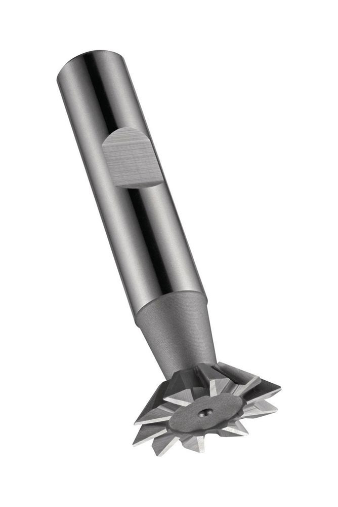45° Schwalbenschwanzfräser mit 10 Zähnen · Durchmesser 20mm mit 5mm Schnitttiefe und 63mm Gesamtlänge · gemäß DIN 1833 C Standard mit einem 12mm Weldonschaft · HSSE-Co mit unbeschichtet · 0° Helix und 0° Spanwinkel zum Schwalbenschwanznutfräsen in Stahl und Stahlguss · Edelstahl · Gusseisen · Nichteisenmetalle und Hochwarmfeste Legierungen