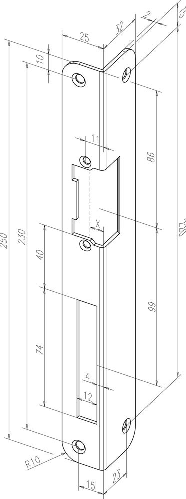 Standard-Winkelschließblech mit Fallen- und -Riegelausschnitt · für gängige eff-eff-Standard-Türöffnermodelle außer ProFix®-Varianten