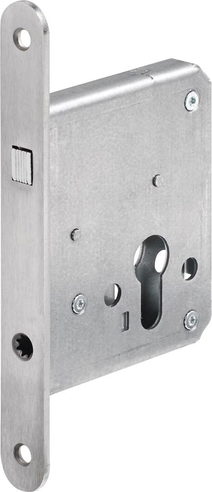 Ausführung mit Klappring-Schlüssel · allseitig geschlossener Schlosskasten · Stulplänge 172 mm · Dornmaß 55 mm · DIN links / rechts verwendbar · Zirkelriegel verchromt · ohne Schließblech · Klappring-Schlüsselausführung nur bei BB-Lochung